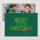 Spread some holiday cheer with the Elf Shenanigans Greeting Sign Photo Christmas Card! This whimsical design features an adorably floppy little elf doll, utterly worn out from its playful escapades, sprawled out with one leg and arm dangling off a chic wrought iron bar. With a cheeky "Merry Elf'n Christmas" emblazoned in a lively light green condensed serif font, this card is bound to bring smiles and laughter. Set against a hunter green background, it’s the perfect blend of humour and festive cheer!