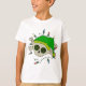 Cute elf skull and crossbones with pointy ears and green cap is surrounded by Christmas lights. This is a super holiday skull everyone will love!