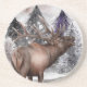 Elk Deer Watercolor Winter Forest Stone Coaster