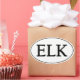 This Euro style ELK oval sticker denotes one of North America's largest mammals, the elk or wapiti. Elk are highly prized by hunters for their large antlers and lean, mild meat.