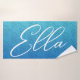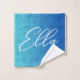 Repeating gray color text handwriting name Ella pattern behind the large white name over blue gradient color