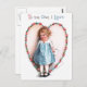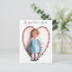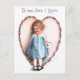 A charming vintage Valentine postcard featuring a cute shy girl with a love letter in front of a beautiful flower heart, painted by the American illustrator/commercial artist Ellen Hattie Clapsaddle.