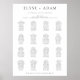 This seating chart poster features a modern minimalist design and 16 tables plus a Bridal table layout. The script text heading is an image that cannot be edited. The heading image can be resized to fit any poster size. All of the other text is fully editable. For more advanced customisation of this design, simply select the "Customise It" button above.