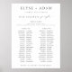 This seating chart poster features a modern minimalist design and 2 long banquet tables and a bridal table layout. The script text heading is an image that cannot be edited. The heading image can be resized to fit any poster size. All of the other text is fully editable. For more advanced customisation of this design, simply select the "Customise It" button above.