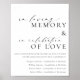 This wedding memorial sign features a modern calligraphy script heading and minimalist design. The script text heading is an image that cannot be edited. The heading image can be resized to fit any poster or sign size. All of the other text is fully editable. For more advanced customisation of this design, simply select the "Customise It" button above.