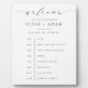 This order of events welcome sign poster features a modern minimalist design. The script text heading is an image that cannot be edited. The heading image can be resized to fit any poster size. All of the other text is fully editable. For more advanced customisation of this design, simply select the "Customise It" button above.