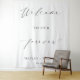 Add the finishing touch to your wedding with this custom wedding quote backdrop. This wedding backdrop features a minimalist design with a script calligraphy heading. The script heading is an image that cannot be edited. All of the other text is fully editable. This wedding backdrop is the perfect accompaniment to your wedding, engagement party, wedding breakfast, couples shower or vow renewal. For more advanced customisation of this design, simply select the "Customise It" button above.
