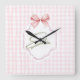 Ellie Personalized Pink Bow & Gingham Print Square Wall Clock