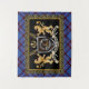 This Elliot wall tapestry is a stunning piece to have in your home. Featuring framed lion supporters on either side of the clan badge and a golden thistle with crossed basket hilt claymore swords. Tapestries were hung on castle walls to keep the warm in from the cold stone behind them. Comes in all sizes.