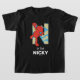 The t-shirt feels and looks great quality, a good thick cotton. It will be a little big for my son, but that means he will be able to wear it and not out grow it too soon. The print was as described on the order when personalised. True size, shape and colour T-shirt- thanks.