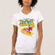 Product arrived fairly quickly but was disappointing. I ordered a women's Slimfit Medium but the shirt fits an 8 year old boy. Printing quality is poor, as is the overall quality of the t-shirt fabric.