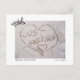 Wedding Announcement postard. "Just Married" is written in the sand - great for those who had destination weddings, elopements, beach ceremonies or honeymooned on the beach! Add your own wedding photo and customise with your own wedding details for a cute, easy to personalise, custom card for family and friends!