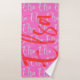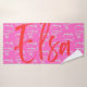 Red handwritten Elsa name and repeating white gray Elsa signature name design pattern over solid pink color background