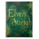 Golden elven script glows against a deep green backdrop, surrounded by mystical symbols and geometric sigils.