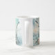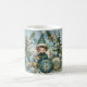 Personalised Christmas Elf coffee mug. The design features blue, white snow, snowflakes, Christmas tree, Christmas ornaments and Christmas Elf. Use the placeholders for TEXT to customise the card by clicking 'Customise' button. Edit using Design tool for your choice of font style and format.