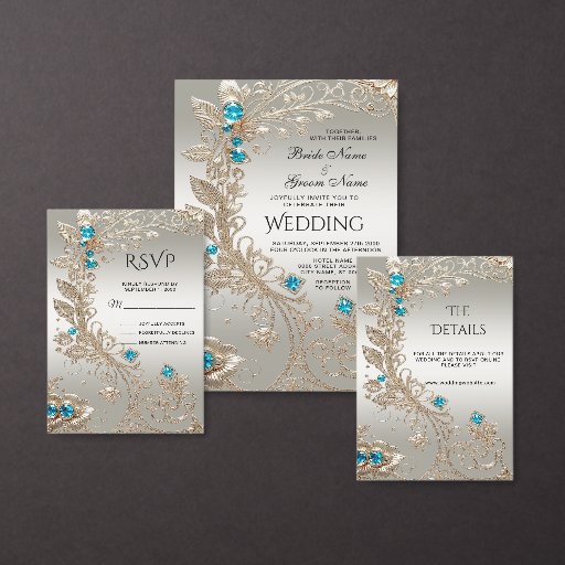 Beautiful Embellishing Gold Blue Stones Gift Tag