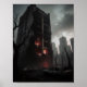 A crumbling tower, strangled by lifeless vines, burns from within against the backdrop of a dead city. Abandoned cars and skeletal trees surround the inferno, their silence contrasting the violent glow that leaks from shattered windows. The scene speaks of a world long past salvation—where fire is not a force of hope, but the final heartbeat of a civilisation swallowed by decay.