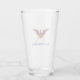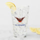 Glass Cup with coat of arms of city of St Paul, Minnesota; emblem with three horizontal stripes of blue and yellow with red emblem in the centre