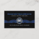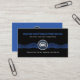 Design features a black cover with an embossed blue water waves pattern near the centre of the card. Riding the blue wave is a faux silver car logo you can use. At the top of the logo lies your business name and a slogan to publicise your services. Change the caption remarks to the slogan to suit your own service needs. Near the base of the card is the contact details.