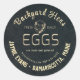Distressed black vintage-look with gold hen logo and 'embossed' font with the word EGGS. Add your name, location, product details and contact info.