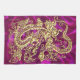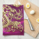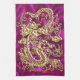 Embossed Gold Dragon Magenta Satin Print Tea Towel