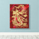 Embossed Gold Dragon on Red Satin Print