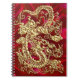 Embossed Gold Dragon on Red Satin Print Spiral Notebook