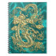 Embossed Gold Dragon on Turquoise Satin Print Notebook