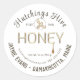 This label has editable fields to comply with the requirements listed by the National Honey Board: the word honey, your business name, personal name, address, and net weight of honey in grams and ounces must be included if you sell your honey. Honey is written in an 'embossed' gold metallic font. Stylised honeybee. Common honey net weight conversions: 8oz (227g), 12oz (340g), 16oz (454g), 32oz (907g), 5lb (2.27kg).