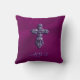Embossed-look Gothic Cross in Purple with Monogram Cushion