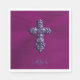 Embossed-look Gothic Cross in Purple with Monogram Napkin