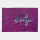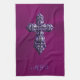 Embossed-look Gothic Cross in Purple with Monogram Tea Towel
