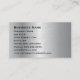 Silver brushed aluminium “appearance and faux embossed” Company Name on front- - elegant design for any corporate position - personalise the text to suit your needs. Makes a great card for men in the corporate world. Professional Elegant Modern Silver Metal Look Customisable Business Card. Ideal for Accountants, Realtors, Attorneys, Real Estate Agents, Lawyers, Brokers and Corporate Professionals.