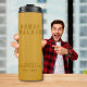 Customise and personalise this elegant gold yellow faux vegan leather thermal tumbler with 3 layers of typography in different shades to simulate the embossed look.