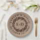 Vintage embossed rose wreath on rustic kraft paper fall wedding paper plate. The focus of this rustic wedding design is a lovely rose wreath frame with your initials in brown in an embossed relief style.