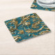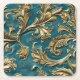 Embossed teal gold faux leather square paper coaster