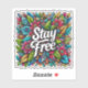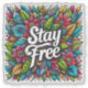 A breathtaking display of colourful flowers and leaves fills the canvas, the intricate patterns embodying a spirit of motivation and joy. The bold phrase Stay Free stands out, encouraging viewers to embrace creativity and individuality in their lives.