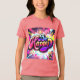 A vibrant and uplifting t-shirt design that celebrates the power of happiness. The bold, colourful font and chaotic splashes of colour create a sense of energy and excitement, while the image of a person embracing the word "Happy" conveys a message of positivity and joy. The design is framed by a black border, adding a modern and stylish touch.