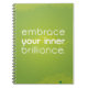 Vibrant colour printed glossy cover with Inspirational message to inspire your written creativity. 80 pages of lined 60lb text paper.