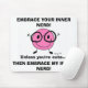 A design for all the nerds out there (like me!)! "EMBRACE YOUR INNER NERD! Unless you're cute.... THEN EMBRACE MY INNER NERD!" Spread the nerd love with this cute, funny and downright awesome design! 'Inner Nerd' character hand drawn and digitally coloured. Copyright 2013 by Sunny