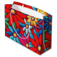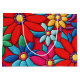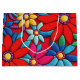 Embroidery abstract daisy flower pattern in red, yellow, blue, and green colours.