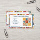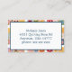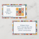 This fun distinctive business card for sewing and quilting artisans is printed with a bright colorful patchwork motif and embroidered flower accents with realistic looking details. Text in dark blue and simple to edit. Customize all text on the front and back in the simple online Zazzle form.