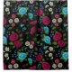 Spruce up your bathroom with this beautiful folk style embroidery design bathroom shower curtain featuring pink,blue flowers,green leaves and blue butterfly on black background. A perfect gift for your friends and family members.