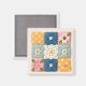 This quilt block patterned fridge magnet is printed with realistic looking embroidered flowers, lace and button details. Colorful, decorative as well as functional collector's gift for anyone who loves quilting, sewing or needlework.
