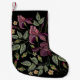 Embroidered Purple Irises Black Background. Small Christmas Stocking