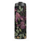 Embroidered Purple Irises Black Background. Thermal Tumbler