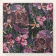 Embroidered Skull: Gothic Orchid Pattern Glass Coaster