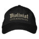 Chocolate brown violinist music hat has embroidered Violin slogan that says Violinist Extraordinaire. Great music gift for any Violin teacher or student, or your whole violin orchestra section.