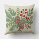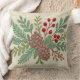 Embroidery Christmas Floral Sprig Pinecone Red Cushion