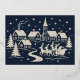 Embroidery Christmas Snowy Village Scene Navy Blue and White